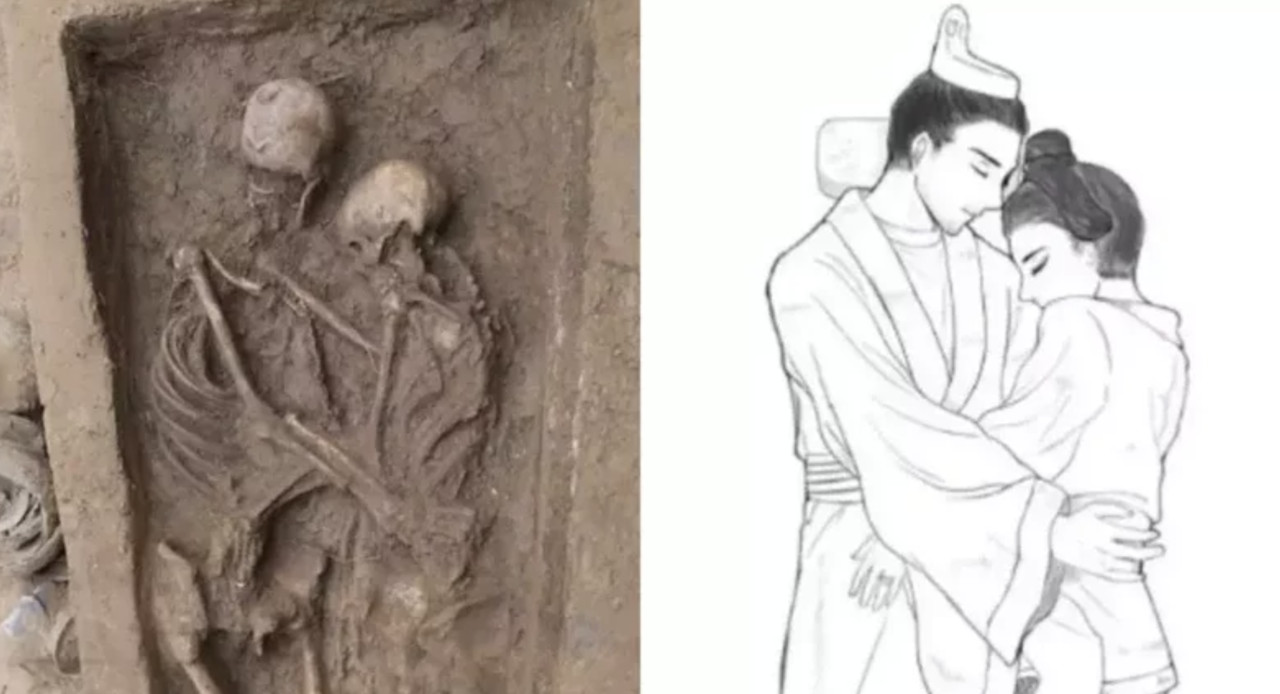 根據《新華社》報導,該墓葬是一座同穴單棺合葬墓,男性墓主與女性墓主面對面側臥,男性右手搭在女性腰部,將女性環抱在懷中;女性墓主頭枕在男性肩部,左手自然搭在男性腹部,左手無名指上戴著一枚銀色素面戒指。兩位墓主親密擁抱在一起,姿態自然、動作舒展。