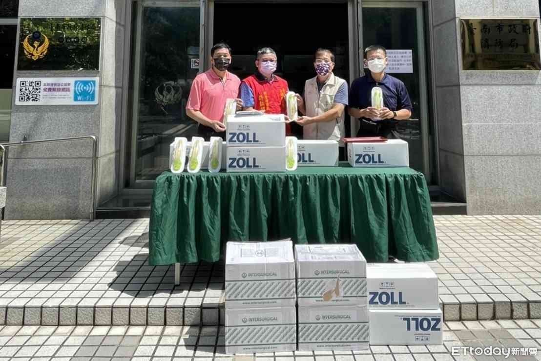 ▲台南市消防之友會提撥新台幣20萬元,捐贈自動體外心臟電擊器貼片91組及拋棄式喉頭罩100組予消防局。(圖/記者林悅翻攝)