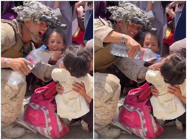 塔利班(Taliban)重奪阿富汗政權後,民眾紛紛湧入首都喀布爾(Kabul)的機場,試圖逃離家鄉。美國海軍陸戰隊第24海軍陸戰遠征隊、空地特遣部隊士兵也在機場外檢查哨站駐守,替阿富汗孩童倒水解渴,其中一名士兵蹲在地上餵水給小朋友喝,還不忘逗孩子笑,暖心影片曝光後,引發熱烈討論。