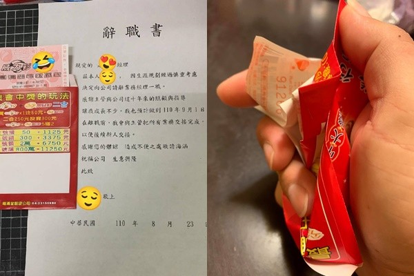 開獎前,一名網友在「爆廢公社二館」發文曬出辭職書,上面寫道「本人XXX因生涯規劃,經過慎重考慮,決定向公司請辭業務經理一職。感謝主管與公司這10年來的照顧與指導,讓我成長不少。」