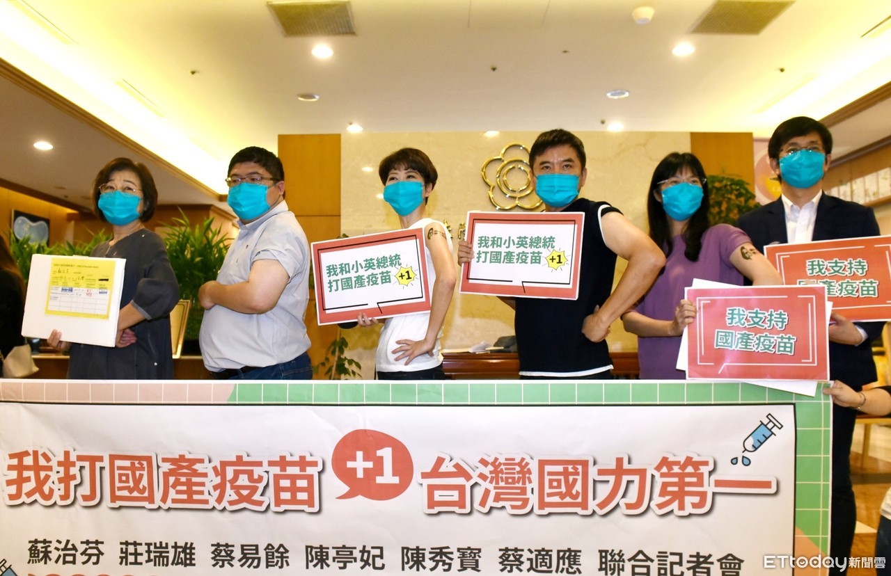 民進黨立委莊瑞雄、陳秀寳、陳亭妃、蔡易餘、蔡適應、蘇治芬今天上午在立法院召開「我打國產疫苗+1,台灣國力第一」記者會,向大家報告接種時及接種後的情形,並且呼籲大家一起支持國產疫苗。
