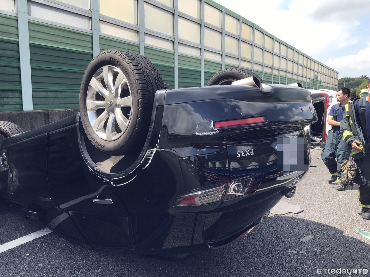 國道1號北上76.9公里處24日上午9時許發生一起連環追撞車禍!現場2部自小客車當場翻覆,整起事故一共造成3人受傷,警消獲報到場處理,後方回堵5公里遠,至於詳細事故發生原因及經過仍有待進一步調查釐清。