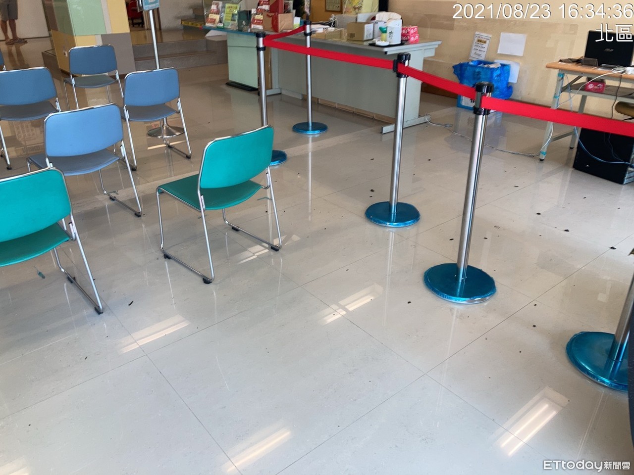 ▲41歲謝姓男子因對診所心有不滿,在找醫師理論被拒後,竟「亮槍」還丟擲易燃甲苯玻璃瓶,現場散布玻璃碎片與甲苯液體。(圖/記者林悅翻攝,下同)