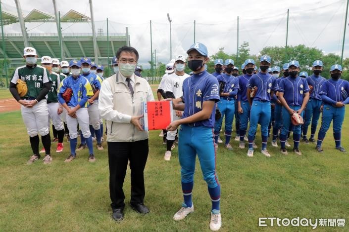 今日黃偉哲視察時,巧遇安順國中棒球隊及青棒選手約20位在現場練習,並由城市棒球隊及統一二軍選手指導,當場見證2019第五屆WBSC世界少棒錦標賽啟用之少棒主、副球場。