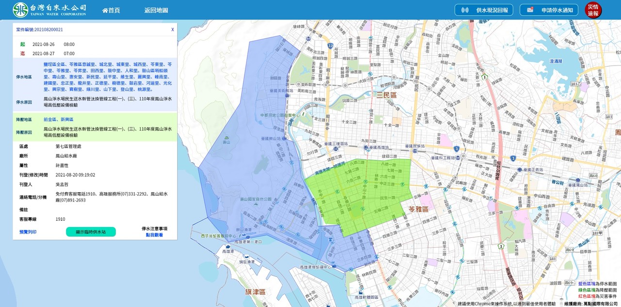 ▲高雄停水。(圖/翻攝自台灣自來水公司)