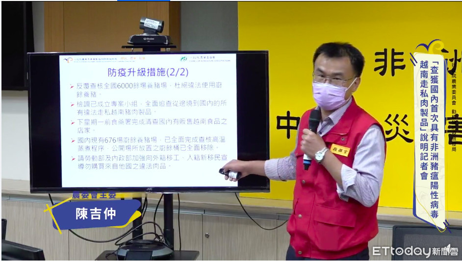 陳吉仲也提到,已與各縣市政府合作,查核各地養豬場使用廚餘情況,一旦發現違規將依《飼料管理法》裁處3萬元至300萬元。也請衛生單位對市售商店、餐廳及小吃業者積極查緝,不得違法使用走私肉品。