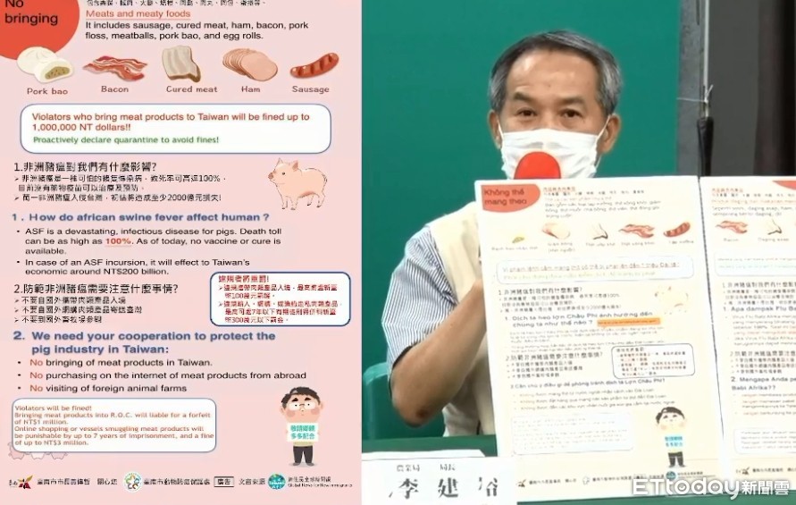 ▲台南市農業局局長李建裕指出,市府強力對於非洲豬瘟進行防治,同時製作多國語言防疫資料向新住民宣導。(圖/記者林悅翻攝,下同)