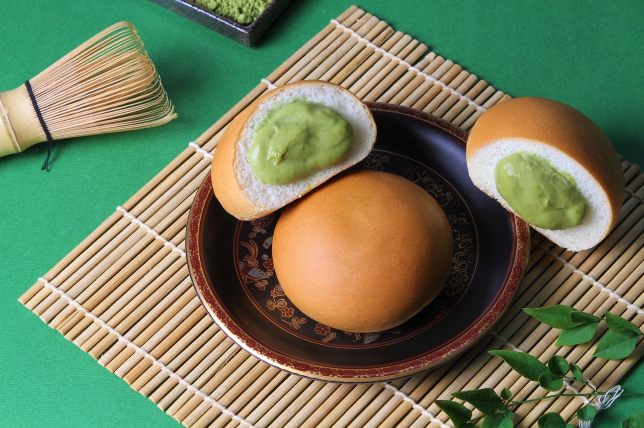 ▲長榮空廚將熱銷餐包升級,再推出「冰心愛餡包」,共計推出奶油、抹茶及可可三種冰心內餡。圖為抹茶口味。(圖/長榮航空提供)