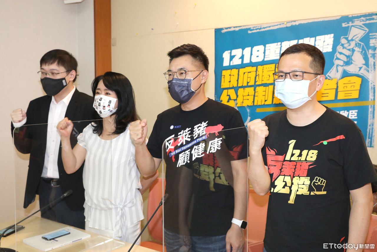 國民黨立委江啟臣、立委李貴敏、核四公投領銜人黃士修27日出席「1218重新出發!政府獨裁、公投制裁!」記者會,宣傳「反萊豬進口」、「珍愛藻礁」、「公投綁大選」及「重啟核四」等四項公投。