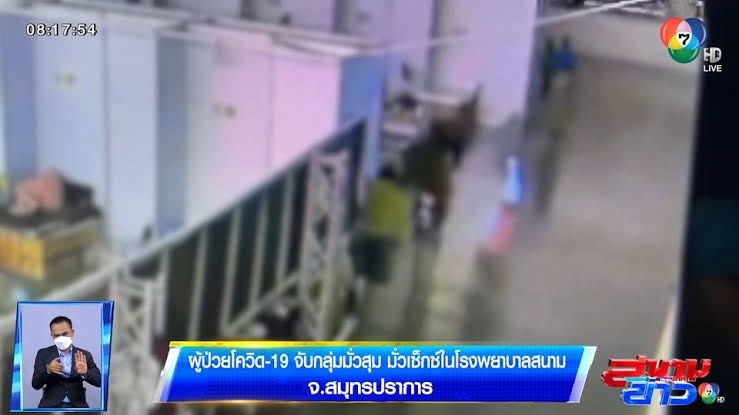泰國沙沒巴干府一處隔離醫院內傳出離譜違規事件,監視器清楚拍下數名女病患跑到男病患的治療區,目的就是要和對方發生性行為。除此之外,醫院內還被爆出有數名病患在廁所內「相互連結」大開狂歡趴,甚至還私藏毒品。