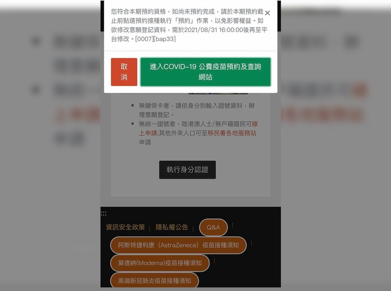 其中,還有網友因為符合本期預約資格,所以根本無法修改意願。從截圖畫面可見,系統跳出「您符合本期預約資格,如尚未預約完成,請於本期預約截止前點選預約接種執行『預約』作業,以免影響權益。如欲修改意願登記資料,需於2021/8/31 16:00:00後再至平台修改。」