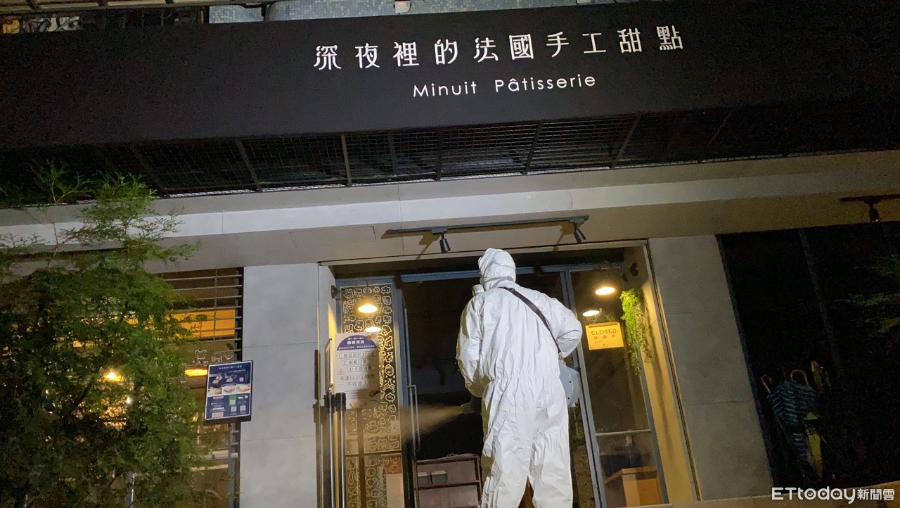 ▲北市知名甜點店「深夜裡的法國手工甜點」2度傳出有確診者造訪過,店家29日凌晨2時許進行清消。(圖/記者游宗樺攝)