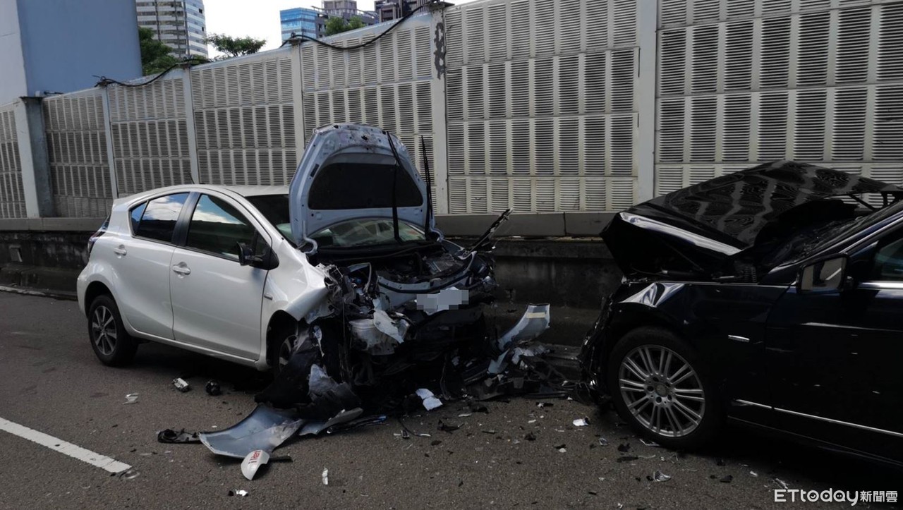 ▲▼台北市市民高架29日上午發生對撞車禍。(圖/記者黃彥傑攝,下同)