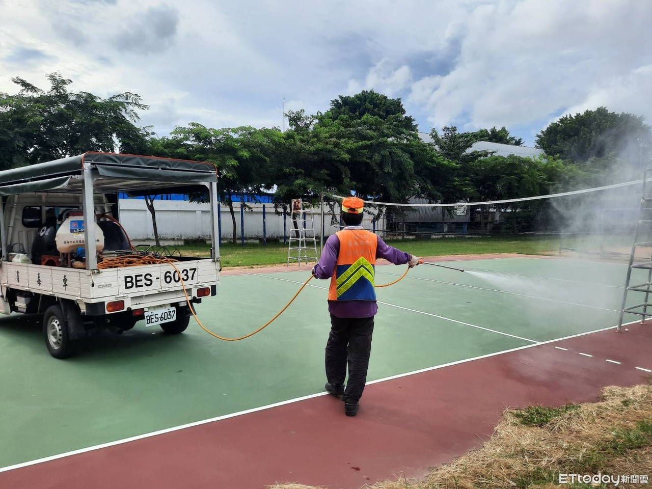 ▲台南市環保局7天已出動1075人次、75台揹負式噴霧機、36輛噴霧消毒車,完成全市368所校園清潔清毒。(圖/記者林悅翻攝,下同)