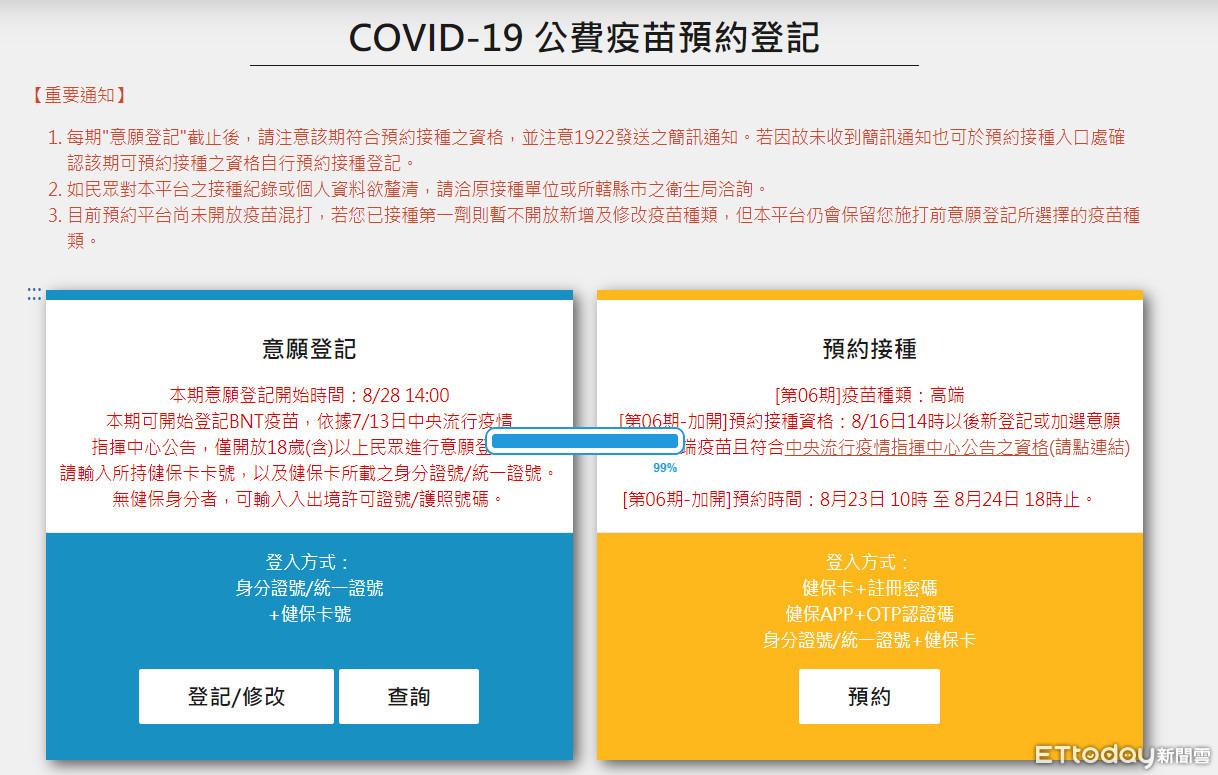 ▲BNT開放意願登記後發生「平台大當機」。(翻攝新冠肺炎公費疫苗預約登記網站)