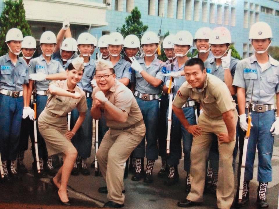 ▲海軍中校喻希豪(前右)十分活耀,曾與海軍儀隊一起參與電視節目錄影。