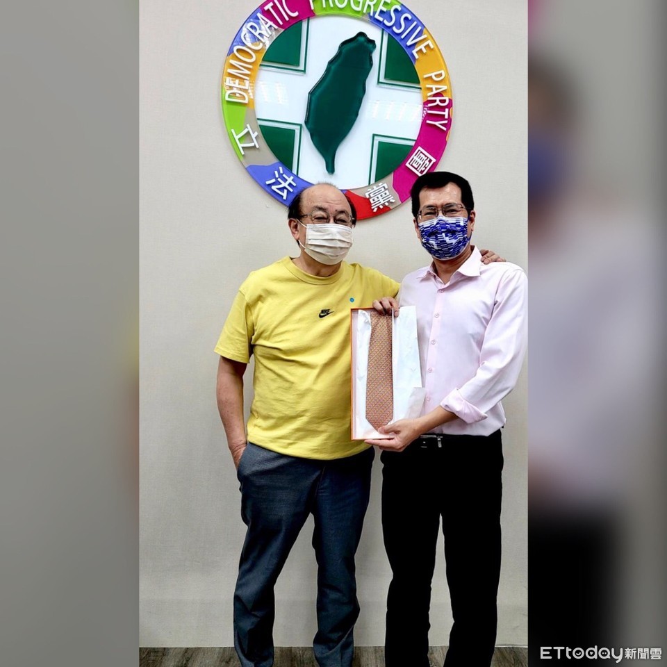 ▲羅致政卸任民進黨團書記長,總召柯建銘親贈高級領帶。(圖/羅致政提供)