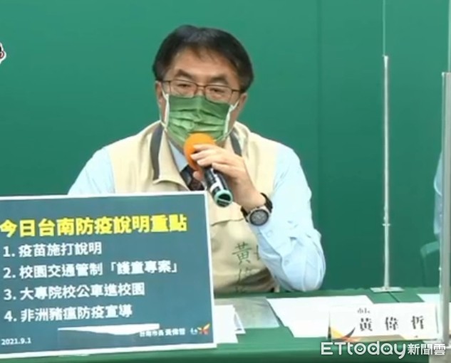 ▲台南市長黃偉哲指出,沒有新的確診案例,9月1日是國高中開學日,各校都已陸續完成開學整備,市府希望做好防疫整備,避免確診及傳播鏈。(圖/記者林悅翻攝,下同)