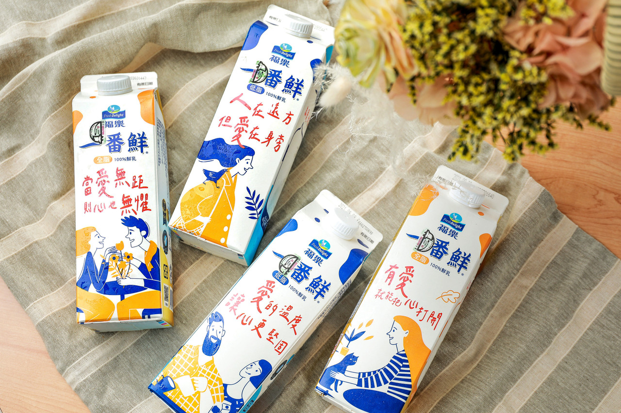為了生計忙碌焦頭爛額的時候、照顧孩子和家庭身心俱疲的時候、感情不順失去自信的時候、獨自一人離鄉背井感覺好孤獨的時候,偶然看見了一句溫暖的話,彷彿像是被讀心一樣,瞬間感覺自己受到撫慰,那句充滿正能量的話鼓舞了沮喪的心,讓人重新得到力量又能再次前行,心中暖暖的好感動。你也曾有過這樣的時刻嗎?而你想到的窩心話又是哪一句呢?始終以優質鮮乳為眾人補充營養的「福樂一番鮮」,今年9月不只要持續成為民眾的活力來源,更推出暖心新包裝,鮮奶盒上印有「愛的短語」,可愛字體搭配人物插畫,共4款新包裝,讓人看了除了忍不住會心一笑,更想把簡單卻飽含溫度的話語送給身邊需要的人。