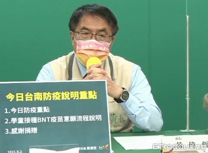 ▲台南市長黃偉哲指出,教育局針對12-17歲學童接種作業預做準備,並率先推出了BNT疫苗接種說明與意願書樣本,資訊充分揭露讓家長安心。(圖/記者林悅翻攝,下同)