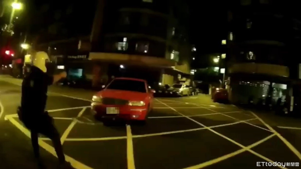 新北市中和警方昨深夜11時許於安平路巷口攔獲一輛行跡詭異的紅色自小客,孰料對方在盤查過程中趁著警方不注意,竟猛然倒退撞倒警用機車,隨後踩下油門逃離現場;當時另名員警見到嫌犯意欲逃離,連忙掏槍大喊「下車!」隨後還朝著紅色自小客連開5槍,連輪胎都精準射爆,但嫌犯仍硬拖著輪框行駛逃離,目前警方正進一步查緝在逃駕駛。