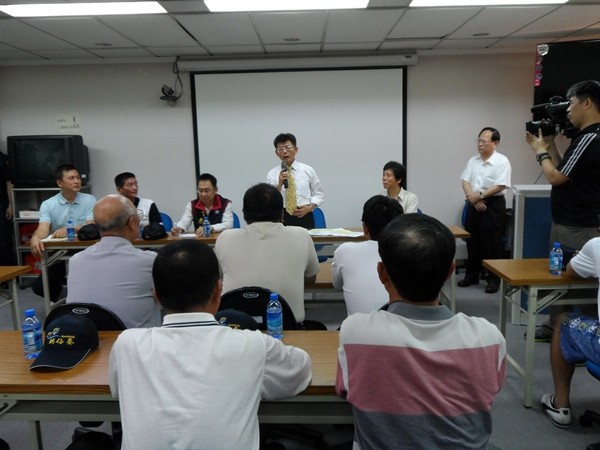 數百位梓官漁民13日向行政院南部聯合服務中心政務委員楊秋興陳情,強烈要求軍方無條件歸還蚵仔寮漁業權,否則不排除以激烈手段號召三、四百艘漁船圍堵左營軍港。