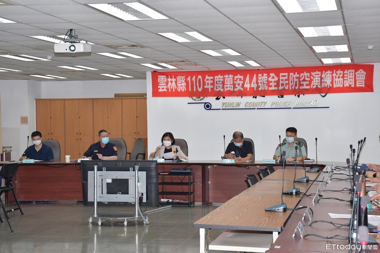 ▲雲林縣長張麗善於今日於雲林縣警察局主持110年軍民聯合防空全民防空演練協調會。 (圖/記者蔡佩旻翻攝)