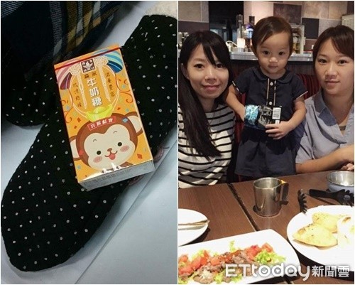 ▼放在兄弟倆手上的森永牛奶糖。(圖/陳修將提供)