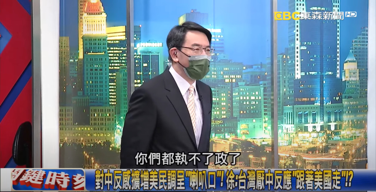 劉寶傑當場嘲笑徐巧芯,「那你們(國民黨)還想執政嗎?民進黨再怎麼做,你們都執不了政了啦!」