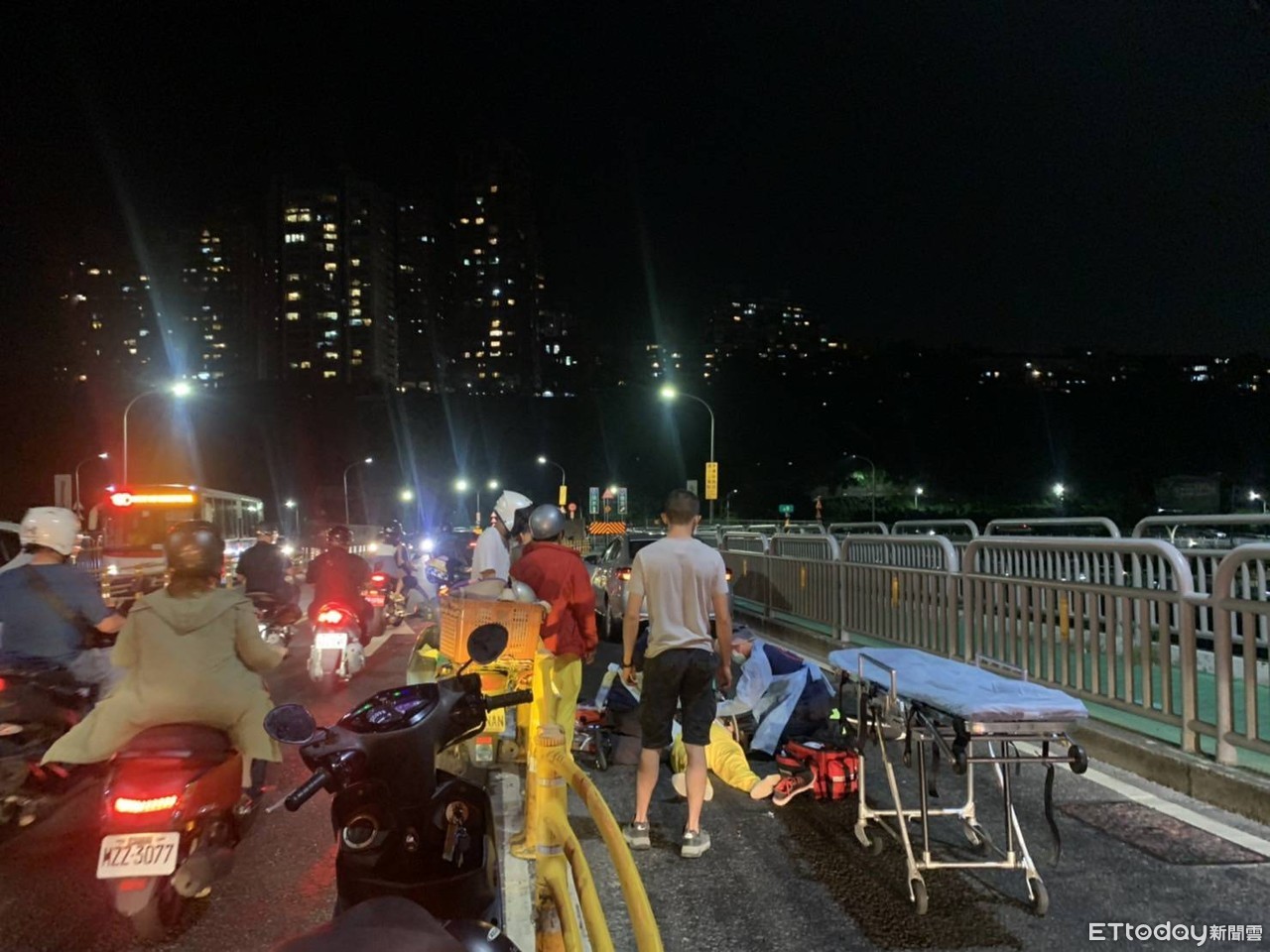 新北市淡水區一對夫妻3日晚間7點多,雙載騎車行經關渡橋往臺北方向,切車道時不慎撞到橋面雙主柱護欄後倒地,後座妻子彈飛又遭後方轎車追撞,頭部受到重創,當場失去呼吸心跳,送醫後宣告不治,而騎士右手骨折性命無礙;汽機車駕駛皆無酒駕,詳細案發原因仍待調查。