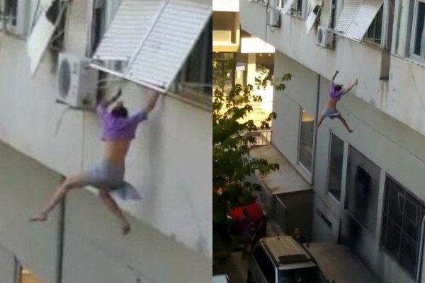 根據《每日郵報》,這起事件發生於土耳其安塔利亞,身穿紫色上衣及灰色短褲的19歲少女賽林(Sirin N.E.)2日被發現自一棟公寓窗戶爬出,原先以雙手緊裝窗框,雙腳抵著公寓外牆,接著鬆手一躍而下,背部撞上停在路邊的一輛廂型車後,重重墜落在車輛與公寓前廊階梯之間的地上,2名警察及多名震驚的路人趕緊上前查看。