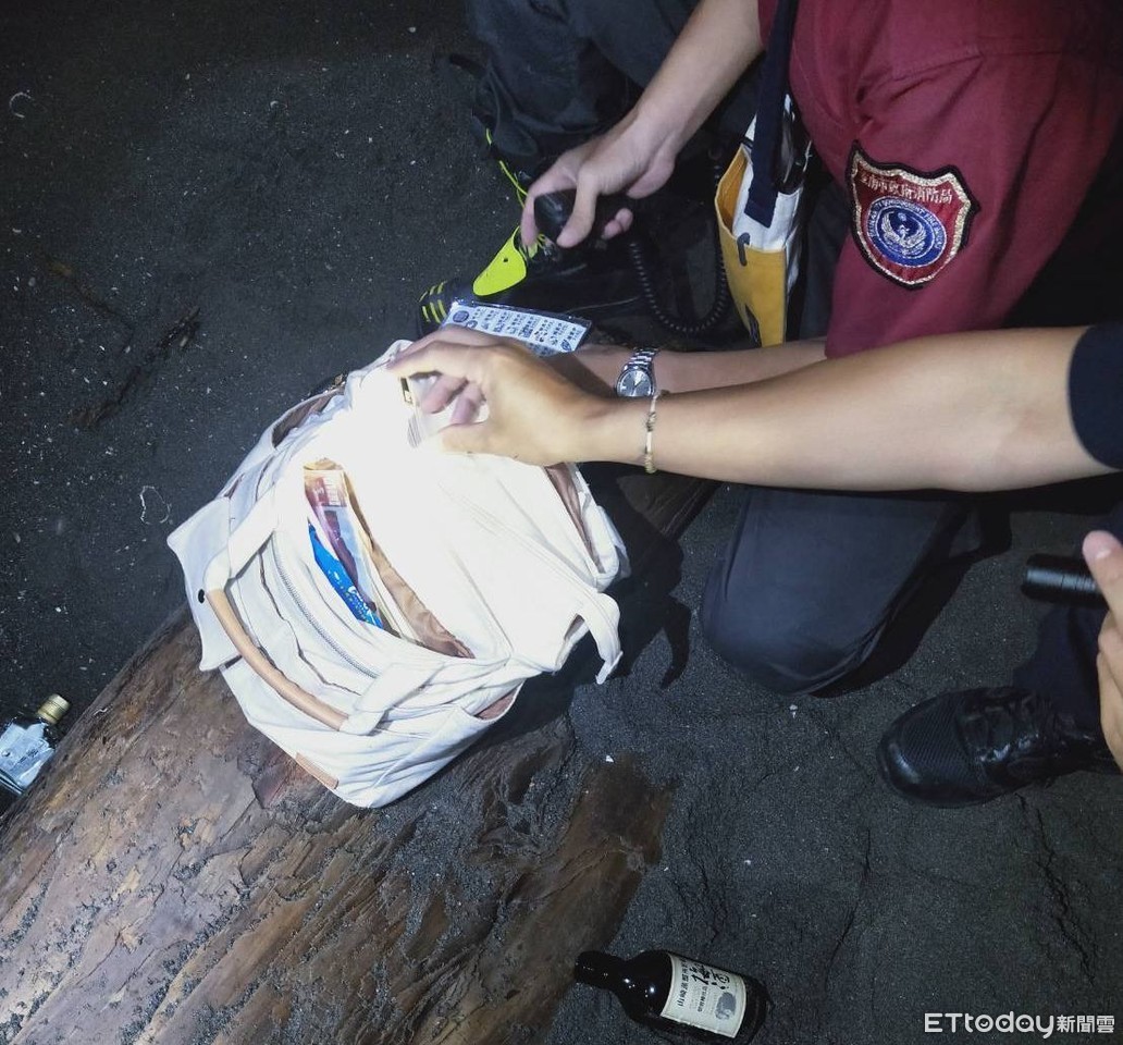 ▲女子深夜前往台南安平觀夕平台跳海,安平警方發現背包及酒瓶,馬上搜索救援,將女子自海拖上岸送醫。(圖/記者林悅翻攝,下同)