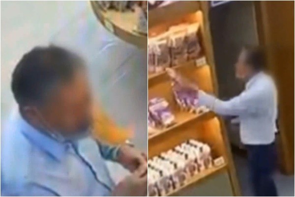 店家將事發監視器畫面PO上網直呼「超扯!超沒水準!!請商家小心」而透過監視器畫面可看到,身穿西裝的男子與友人進到伴手禮店後,先是拿起一包沙其馬,接著當場拆封商品,大喇喇地將口罩拉下,開始試吃,結果吃完還將垃圾任意丟在商品架上,並若無其事地將「拆封過的商品」放回原位,最後待友人結帳後,2人便離開現場。