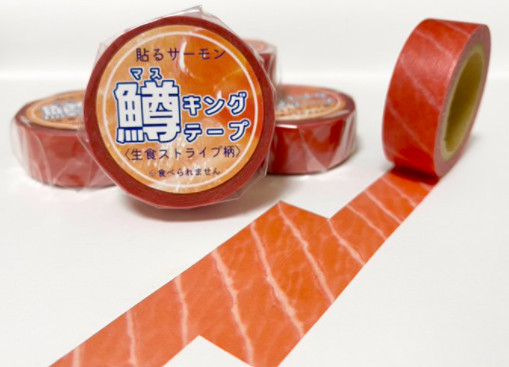 日本一名網友因為太愛鮭魚了,便做了一款鮭魚肉造型的紙膠帶,成品非常逼真,不管是肉的顏色還是紋路都和真的生鮭魚一樣,目前已經在網路上開售,一個要價390塊日幣(約新台幣98元),仍然吸引不少人搶購,有人甚至一次就買了5個。