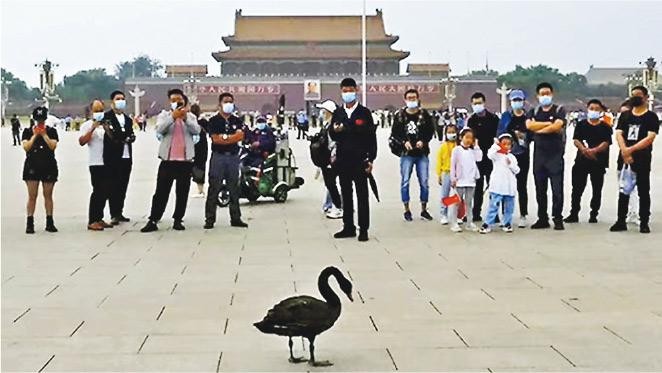 ▲北京天安門廣場出現一隻黑天鵝。(圖/翻攝自微博,下同)
