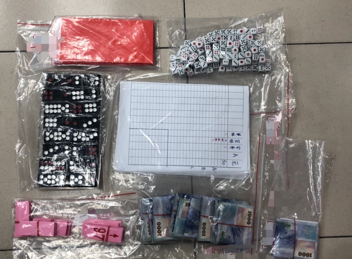 ▲警方查扣賭金和天九牌等物。(圖/記者洪靖宜翻攝)