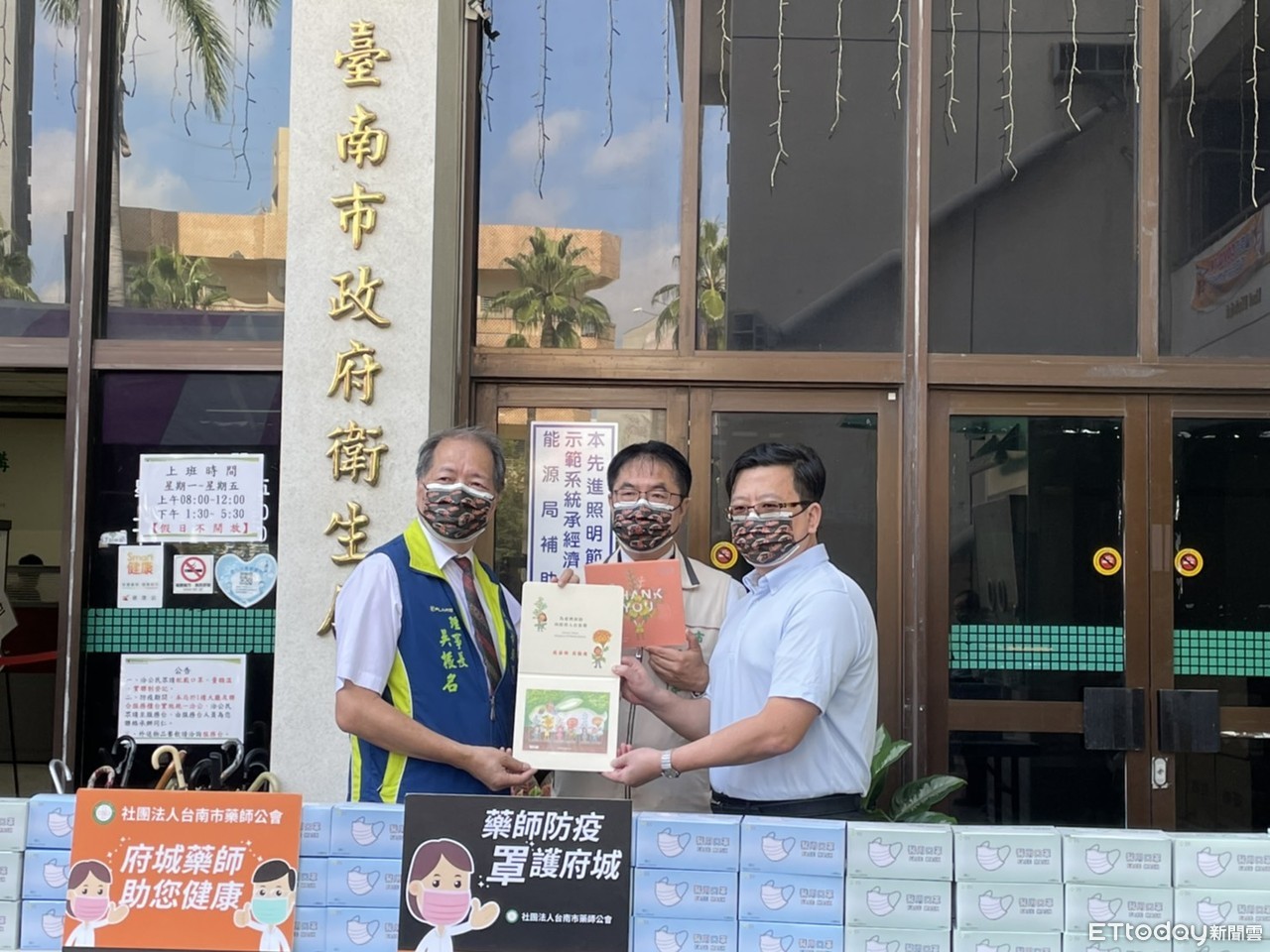 ▲台南市藥師公會在台南市衛生局,歸還5月初市府緊急調撥的18萬片救命口罩。(圖/記者林悅翻攝,下同)
