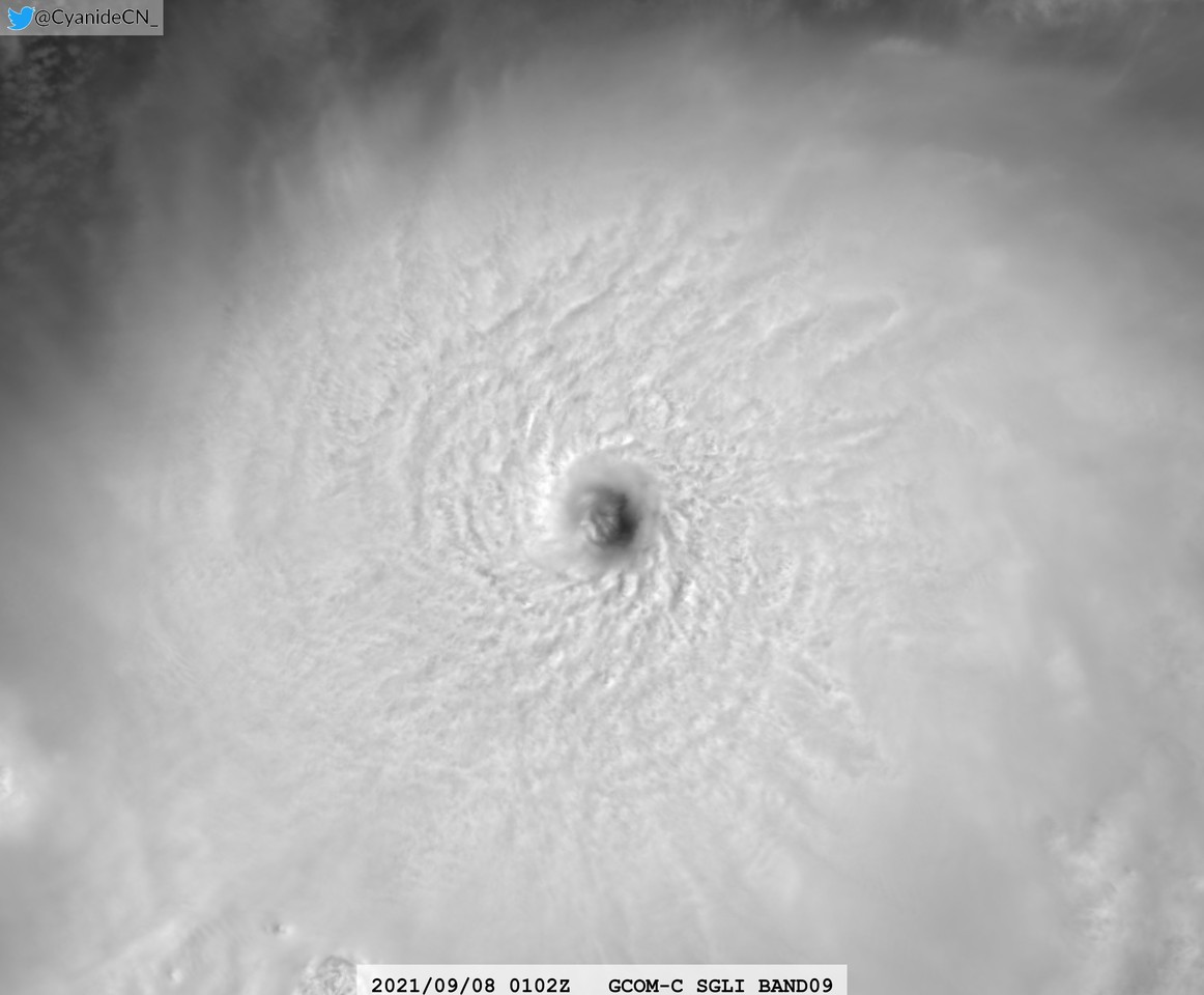 ▼推特網友PO出璨樹颱風的衛星雲圖,颱風雲層濃厚、颱風眼相當清晰可見。