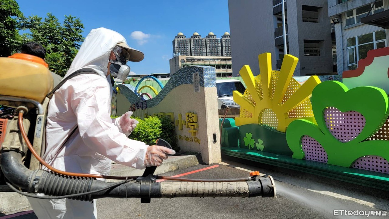 ▲板橋新埔國小環保局人員消毒。(圖/記者呂佳賢攝)