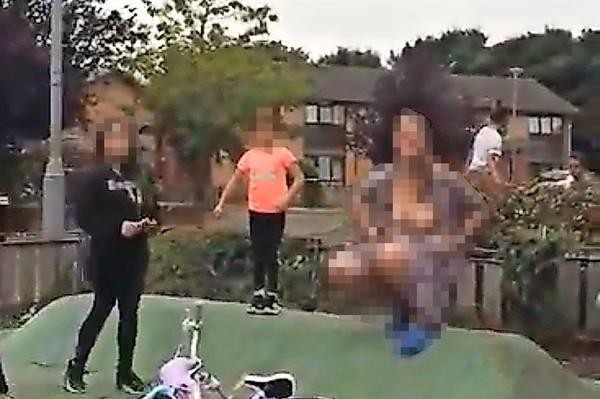 ▲一名地方媽媽到公園對孩童露出雙乳,嚇壞在場所有孩童。(圖/翻攝自推特@RenLive_)