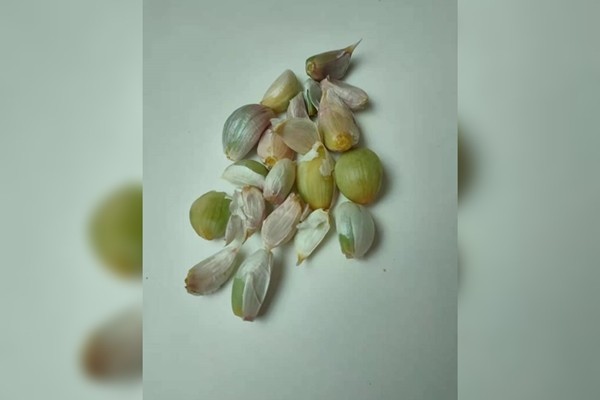 這名男子在「廚藝公社」表示,他母親買了一包大蒜,每天會拿一點放在廚房,沒想到隔天就會變成綠色,完全不曉得還能不能吃。