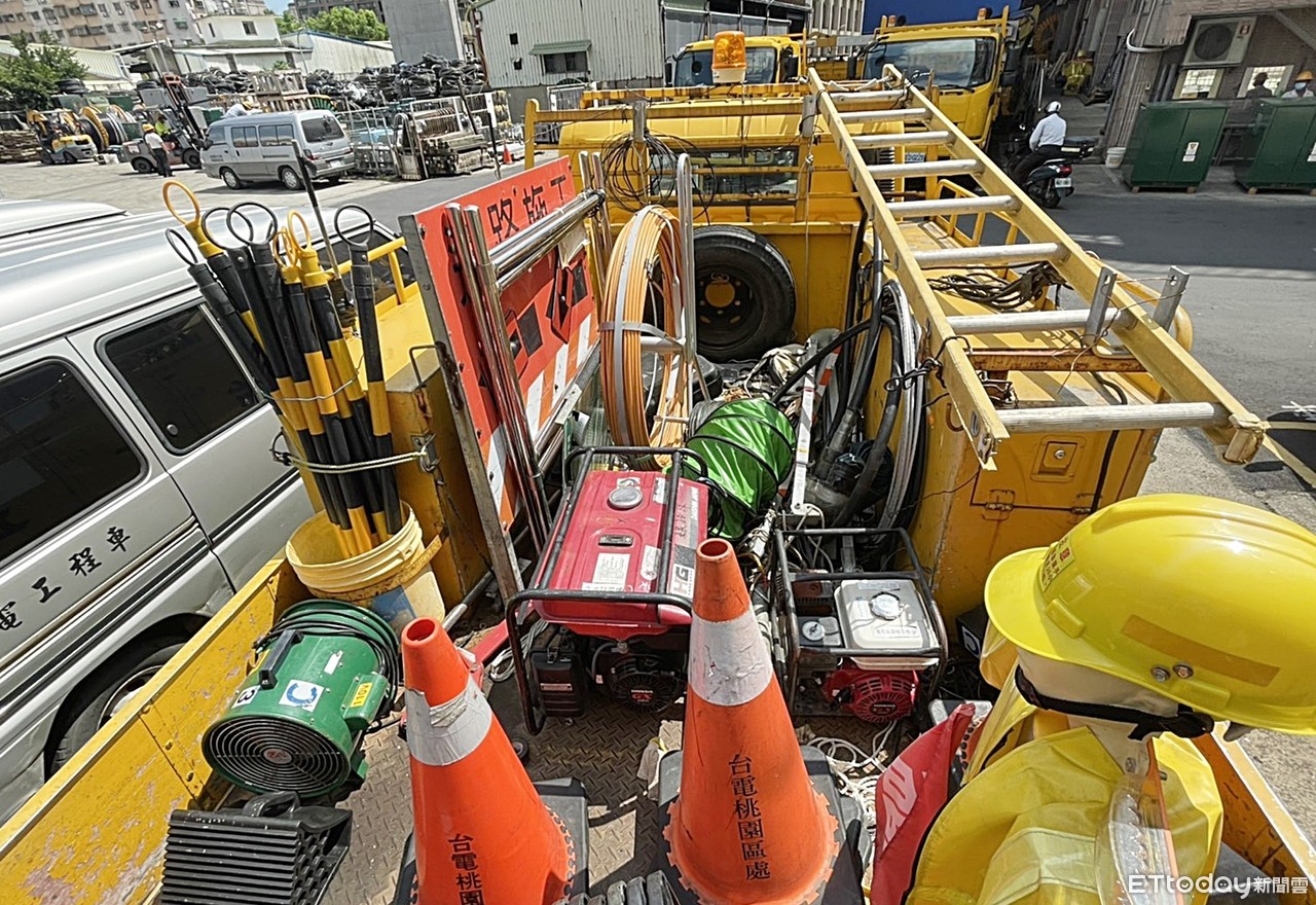 ▲台電工程人員11日上午進行搶救物資整備,搶修工程車已準備就緒。(圖/記者沈繼昌翻攝)