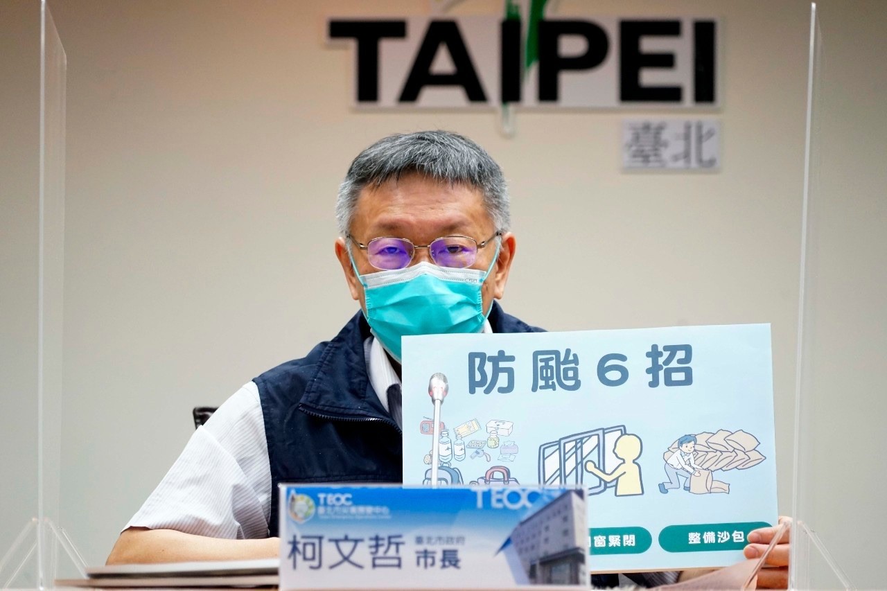 柯文哲表示,目前要呼籲市民的,因為風雨應該是到明天中午會比較大,所以今天晚上下水道、路樹要處理的可以打1999反映,需要沙包就跟區公所領,也可以自己檢查一下排水孔,盆栽移到室內。