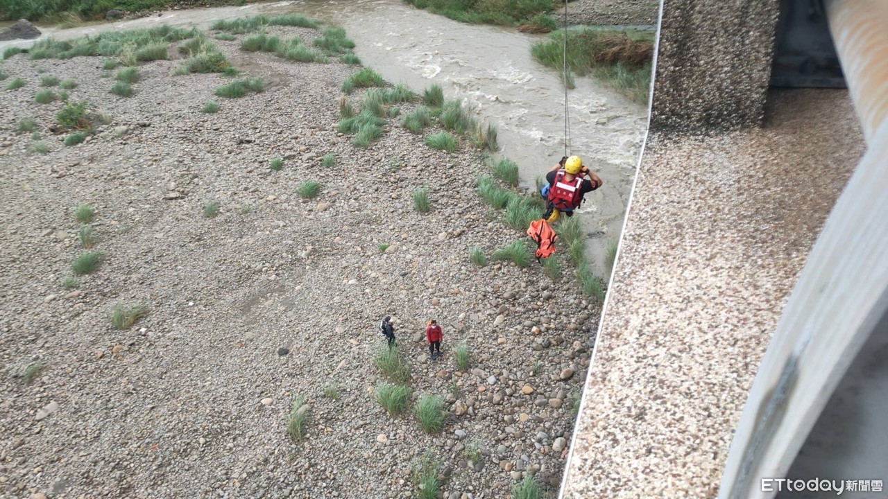 ▲▼苗栗龜山橋下沙洲釣客受困 。(圖/記者陳凱力翻攝,下同)