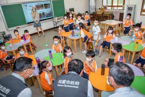 鄭市長說,青埔國小是桃園10所試辦雙語創新教學計畫的學校之一,學校聘用外籍教師與英語專長中師協同教學,提供沉浸式全英語學習環境,讓師生自然的以英語互動,增進學生使用英語的機會,學生英語聽力及口說能力也隨之提升,展現實施雙語教學的豐碩成果。