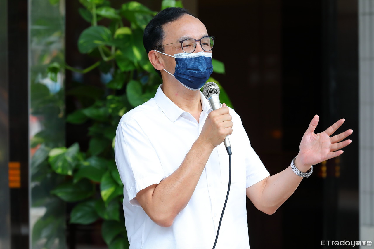 ▲針對張亞中將被國民黨移送考紀會調查,朱立倫召開記者會發表聲明。(圖/記者湯興漢攝)
