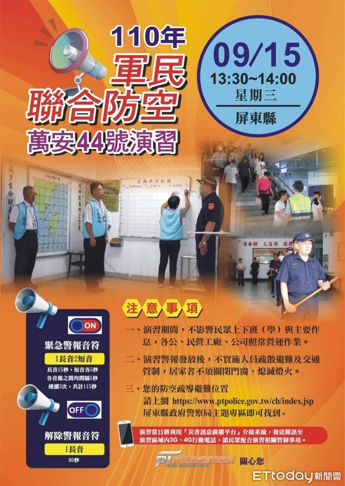 ▲屏縣萬安44號演習15日舉行,不實施交通、人員、燈火管制 。(圖/記者陳崑福翻攝,以下同)