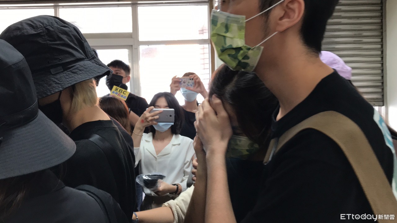 ▲龍劭華妻子、女兒與兒子現身殯儀館。(圖/記者吳世龍攝,下同)