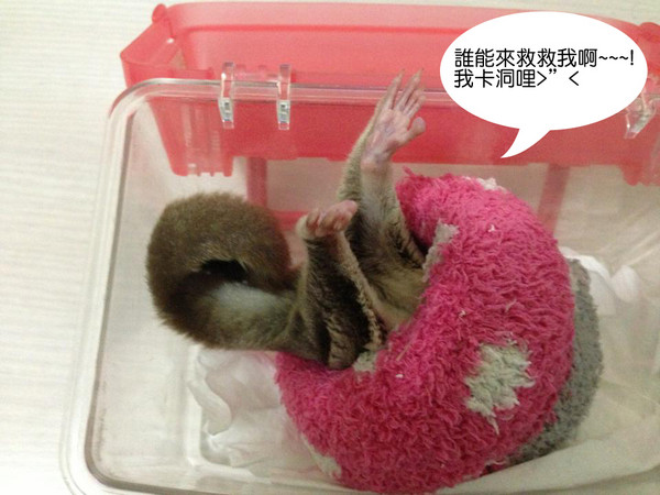 吃太胖的慘劇就是卡洞哩~_~"咪嚕咕當下應該是在呼救...腳腳一直踢踢踢的XD