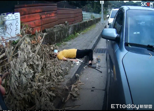 ▲汐止區3日清晨民眾目擊一老婦人陳屍路旁,警消到場處理才發現是老婦醉倒路邊。(圖/記者張君豪翻攝)